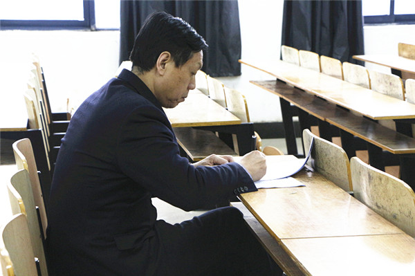 5日早上8:20,在综合楼402教室,张安富校长坐在教室的后排座位,认真听取管理学院吴迪老师的《服务管理》课程,并仔细翻阅教材。课后,张安富校长和吴迪老师分享了自己的听课体会,并就教学方式、教学内容等提出了一些建议。他建议,吴迪老师在授课过程中,可以结合生动具体的案例,深入浅出地向学生讲解理论知识。