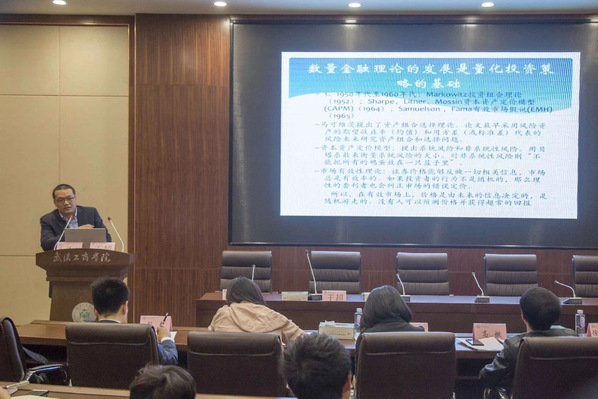 新闻中心讯(特约记者 黄燕)量化投资是指通过数量化方式及计算机程序化发出买卖指令,以获取稳定收益为目的的交易方式,这是最近几年来金融投资理论和应用非常热的一个领域。但是什么是量化投资?量化投资的发展历程及其在中国的现状和发展如何?近日,中国科学技术大学金融工程专业博士、CFA(特许金融分析师)、FRM(金融风险管理师)王超做客必赢优惠y272net第20期中部金融讲坛,在学校图书馆第四会议室为经济与商务外语学院100余名师生讲授量化投资在中国市场的实践。