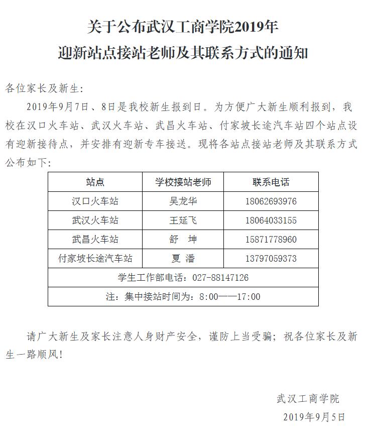 关于公布必赢优惠y272net2019年迎新站点接站老师及其联系方式的通知