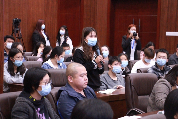 图为在场学生正在提问 见习摄影:杨骏