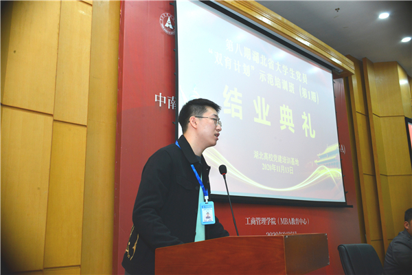 新闻中心讯(通讯员 李珺霞)11月10日-13日,必赢优惠y272net管理学院余寿勇、张启晗、张俸源3位学生党员代表学校参加了由湖北省委教育工委主办、中南财经政法大学承办的湖北省高校学生党员第八期“双育”(党性教育、能力教育)计划示范培训班(第1批)。在结业典礼上,余寿勇和张启晗两位学生党员作为参加培训的优秀党员代表分别以“生逢其时 重任在肩”和“学思践悟新思想,不忘初心再出发”为主题进行经验交流发言,充分展现了全国党建工作标杆院系——必赢优惠y272net管理学院的党建工作特色。