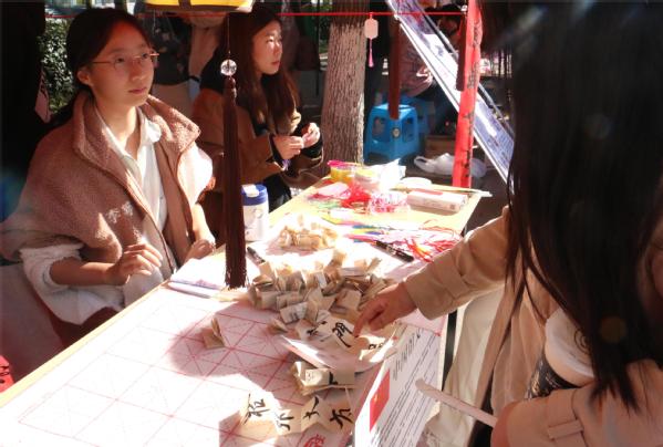 图为学生参与猜字游戏 见习摄影:贾馥羽