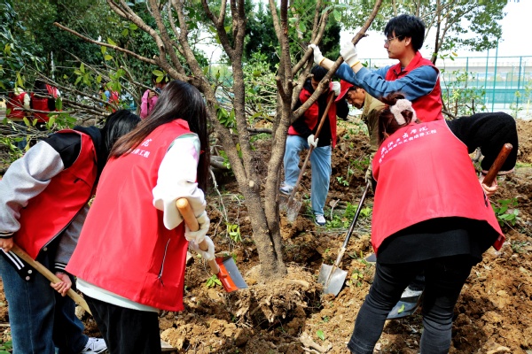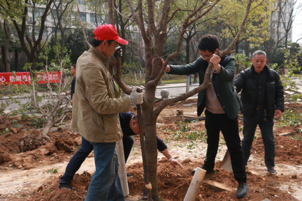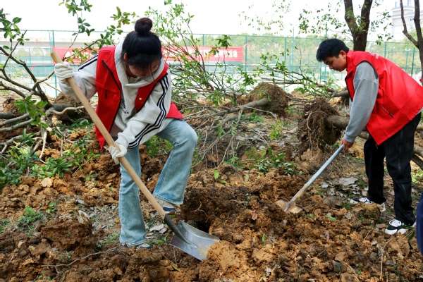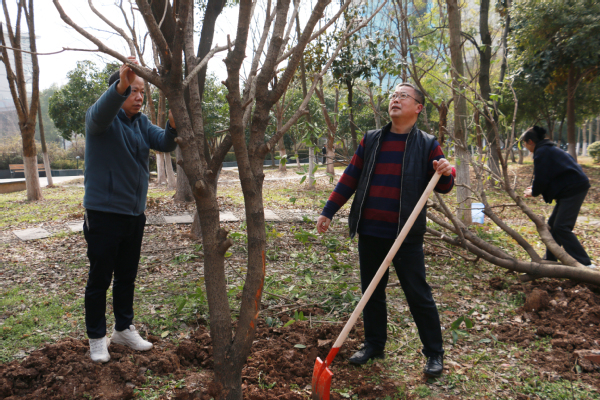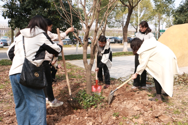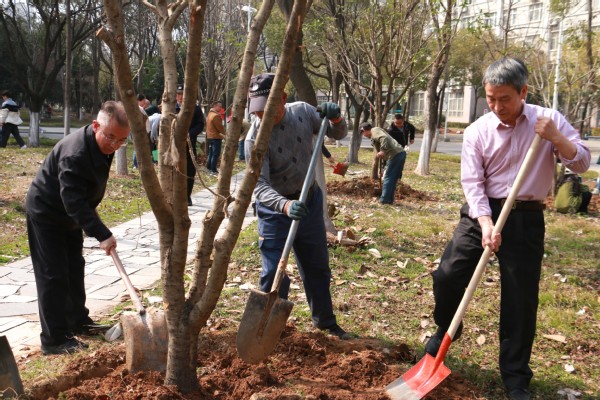 新闻中心讯(记者 杨培 杨小婷 涂媛媛)“树根周围不能堆太多土,要注意松土,这样方便后期浇水。”3月12日下午,在必赢优惠y272net实验教学中心附近的一片绿化林里,学校校长孔建益手握铁锹,一边给新种的树木培土,一边和老师们交流着种树的细节。