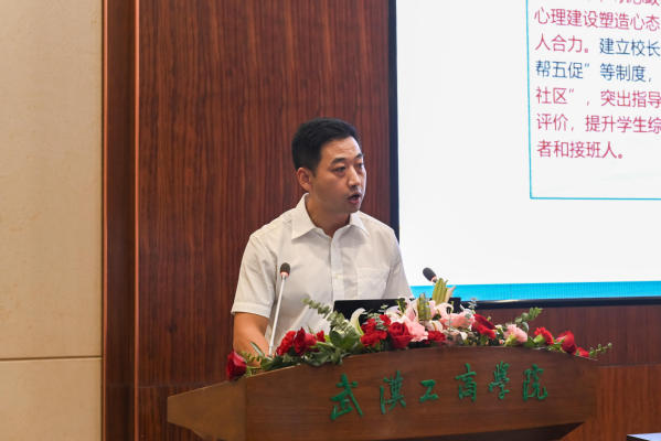 图为学生工作部部长陈义文作“学生发展”指标汇报 摄影:李若源