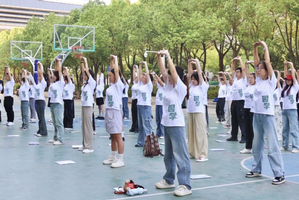 图为刘生元副校长为第九届国学夏令营营员授旗 摄影:芮雨欣