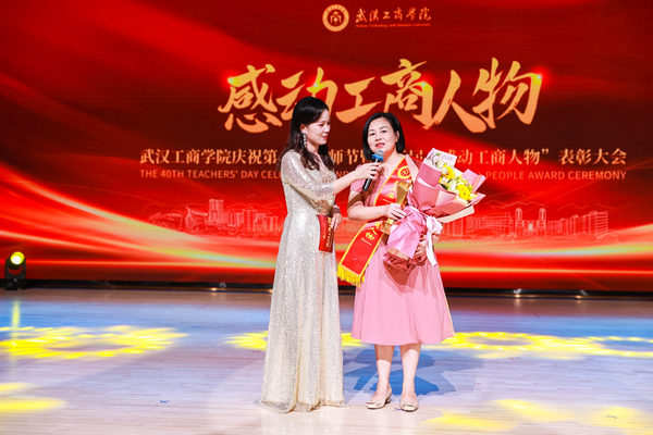 图为团队负责人张晓骏在第三届“感动工商人物”表彰大会现场接受主持人采访