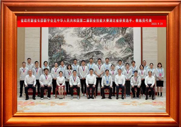 图为时任省政府副省长邵新宇会见中国第二届职业技能大赛湖北省获奖选手、教练员代表