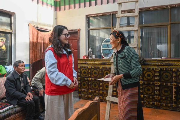 图为“火凤凰”援藏教育关爱队师生前往藏族孩子家进行家访慰问 摄影:李若源