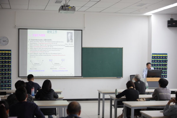 讲座中,李志纯教授以其深厚的学术底蕴和丰富的实践经验,引导大家从研究问题出发,深入探讨管理学研究方法。他以自己在交通行为建模、城市交通基础设施投资决策、交通需求管理、交通投资与城市经济以及应急管理等多个领域发表的50余篇高水平学术论文为例,生动展示了如何从现实现象中挖掘新问题,并通过创新性的研究提出解决方案的科研思路。例如,他在诺贝尔经济学家Vickrey的瓶颈模型基础上,提出了全天通勤模型;从“女士停车位”现象中获得灵感,开展案例调研和数学建模;针对中国不同城市的汽车配额方案,研究了配额方案引起的不平等问题;针对农村物流不便的问题,提出了城乡一体化分层枢纽选址模型等。李教授强调,科学研究应该源于生活,解决实际问题,给出实用见解。