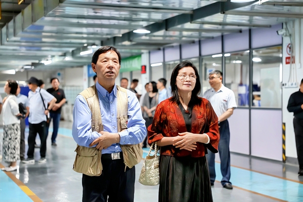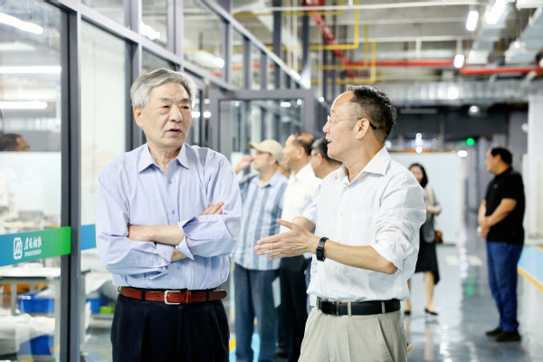 图为彭秀春董事长、刘生元副校长陪同老领导们先后参观学校青菱科学与艺术馆、新能源与储能技术研究院智造中心等地 摄影:孙欢欢
