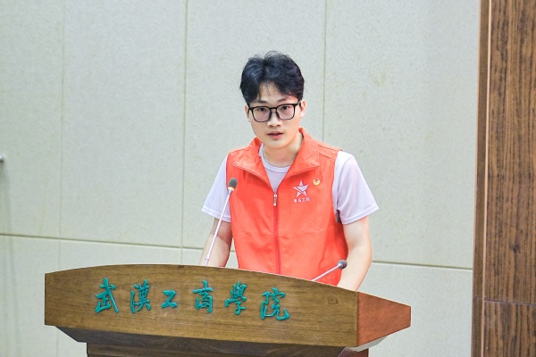 学生饶志轩作为新学员代表上台发言,他代表全体二期学员作出庄严承诺,要在“青马工程”班学习期间,严格遵守班级纪律,认真参加理论学习,扎实开展社会实践,广泛参与志愿服务,主动强化互相学习,切实实现自我成长。