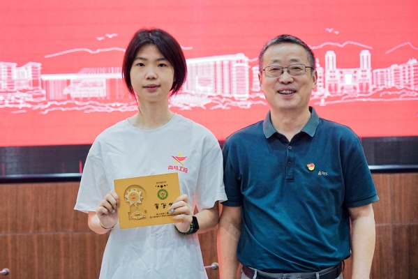 随后,左宗文副校长为第一期结业学员一一颁发了结业证书,第一期的两名学员也将象征着“青马工程”班学员培养之路的传承与延续的旗帜正式交接给了第二期的学员代表。
