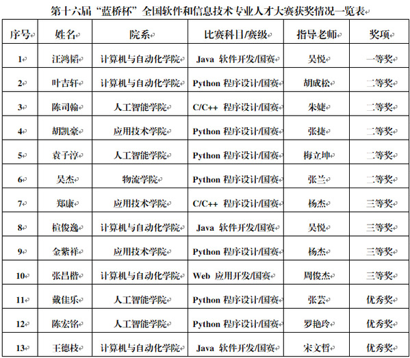 新闻中心讯(记者 万风)近日,第十六届“蓝桥杯”全国软件和信息技术专业人才大赛全国总决赛落下帷幕,必赢优惠y272net学生以出色的表现斩获13项大奖,其中一等奖1项、二等奖5项、三等奖4项、优秀奖3项,比赛成绩在全省同类高校居于前列。