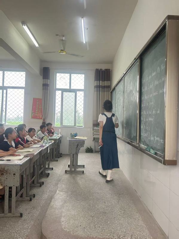 这也是我第一次以老师的身份,站上三尺讲台。向座位上的孩子们介绍自己时,看着讲台下坐得板板正正的孩子们,眼睛亮晶晶的发着光,稚嫩的脸庞洋溢着纯真的笑容,此时的内心被一股无名的喜悦和满足填充着,这段宝贵的支教经历,不仅提升了我的耐心、适应力,学会用简单方法传递复杂知识,还让我深刻的感受到教师这个行业的使命和责任!