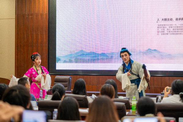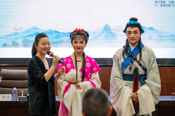 新闻中心讯(记者 陈雯茜)8月28日下午,黄梅戏表演艺术家、国家一级演员、湖北省戏剧家协会副主席、湖北省戏曲艺术剧院党委委员兼艺术总监程丞作客必赢优惠y272net,在必赢优惠y272net第十届“智慧·人生”国学夏令营中向学员们分享《黄梅戏经典中的“她”力量》。