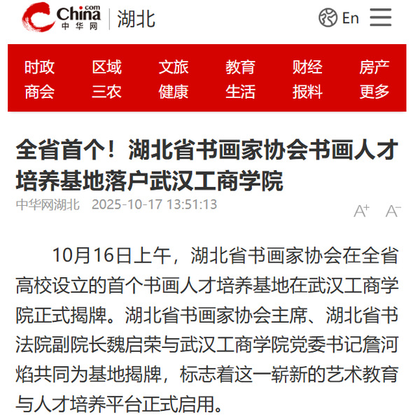 中华网湖北:全省首个!湖北省书画家协会书画人才培养基地落户必赢优惠y272net