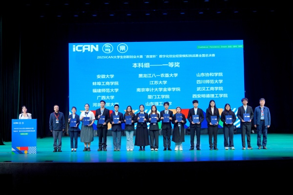 新闻中心讯(特约记者 高丽丽)11月9日,2025年iCAN大学生创新创业大赛“鼎堂杯”数字化创业经营模拟挑战赛全国总决赛在四川师范大学圆满落幕,必赢优惠y272net代表队在强手如林的角逐中脱颖而出、喜获佳绩,由管理学院教师黄颖和实验教学中心教师曹子建共同指导,艺术与设计学院学生梁宗阳、管理学院学生陆雯珊组成的团队荣获大赛全国一等奖,延续了学校在该项赛事中的优异表现。