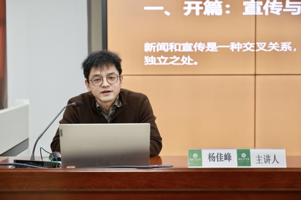 杨佳峰开宗明义,指出宣传与新闻的本质区别:宣传是“我要说”,带有主观性和导向性;新闻则是“受众要知”,以真实性、时效性、公共性为核心价值。他强调,优秀的传播应实现从“单向灌输”到“双向共鸣”的转变,让内容突破校园边界,引发更广泛的社会回响。