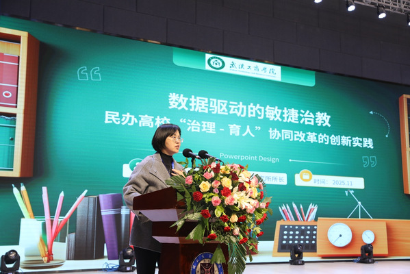 在由武昌理工学院党委书记高建勋主持的发展论坛环节,亓小林教授以《数据驱动的敏捷治教:民办高校“治理-育人”协同改革的创新实践》为题,分享了围绕高校治理与数字化转型开展的最新研究和实践思考。