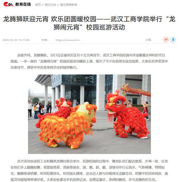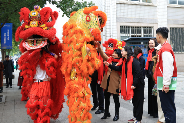 作为该校精英龙狮社成员,国际教育学院国际贸易专业2024级学生郭枕兴已连续两年参与到元宵龙狮校园巡游活动中,活动结束后他难掩兴奋地说:“我很喜欢舞龙舞狮这项中国传统体育活动,进入大学不久就加入了龙狮社,一点点学习马步、举狮和步法。很荣幸能在元宵佳节,将祖辈流传的技艺化作青春的表达,让更多人了解并喜爱中华优秀传统文化。希望通过我们的表演,为大家送上节日的祝福。”