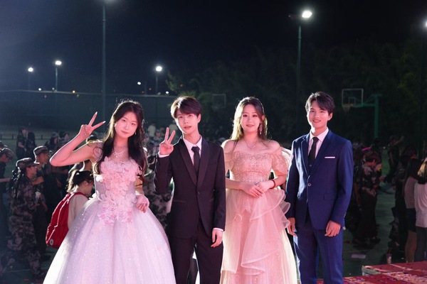 图为王敏惠(右二)参与主持校级晚会