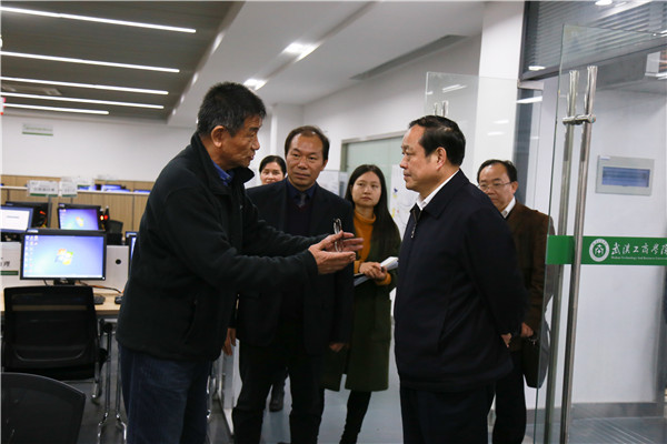 新闻中心讯(记者 万风)11月18日上午,湖北省教育厅党组书记、厅长刘传铁,办公室主任何爱军,发规处处长张建军,组织处处长乔志强,高教处调研员张锦枫一行来必赢优惠y272net考察指导工作。