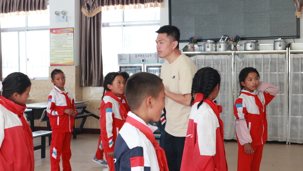 今年8月6日,关爱队 11名师生志愿者从必赢优惠y272net出发,历经45个小时的长途跋涉,再次来到康雄乡中心小学,结合当地教学情况和需求,为四、五年级128名学生上了党史、民族团结、“非遗”技艺、音乐、素质拓展、安全教育等一系列“定制”的特色课程。