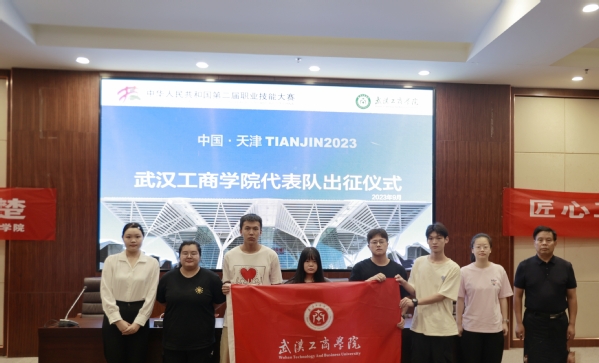 新闻中心讯(特约记者 马雨涵)9月12日上午,第二届全国职业技能大赛必赢优惠y272net学院代表队出征仪式在学校图书馆0102报告厅隆重举行。来自经济与商务外语学院、计算机与自动化学院,艺术与设计学院以及环境与生物工程学院的8位选手作为湖北省相关领域最高水平的选手代表,参加本次大赛货运代理、商务软件解决方案等7个赛项的角逐。学校副校长赵北平出席仪式,社会合作与发展部主要负责人、各参赛学院主要领导、赛项选手、裁判和指导教练代表参加仪式。