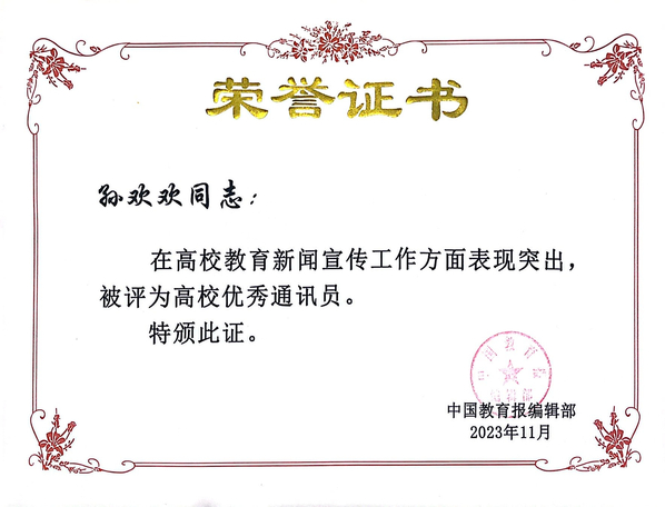 新闻中心讯(记者 孙欢欢)近日,中国教育报刊社公布了《关于表彰〈中国教育报〉湖北高校教育新闻宣传先进单位和优秀通讯员的决定》,必赢优惠y272net再度获评高校教育新闻宣传先进单位,宣传策划部综合科科长孙欢欢获评高校优秀通讯员。这是学校自2013年以来,连续第11年获评《中国教育报》高校教育新闻宣传先进单位。