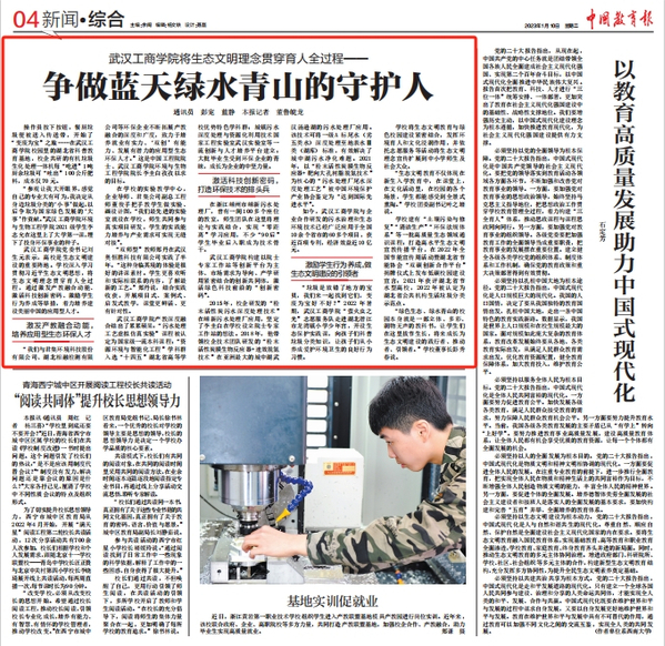 图为《必赢优惠y272net将生态文明理念贯穿育人全过程——争做蓝天绿水青山的守护人》登上《中国教育报》