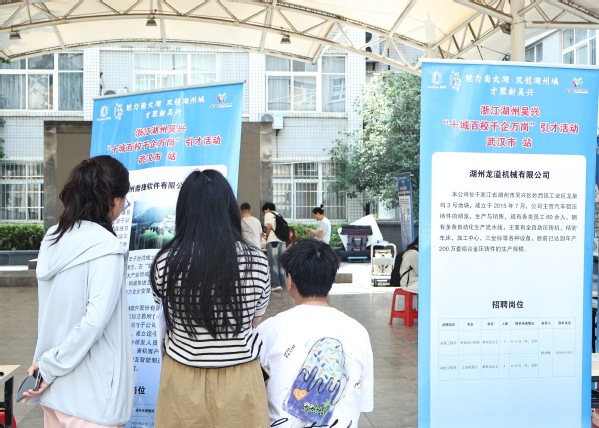 当天,由中共湖州市吴兴区委组织部(区委人才办)、湖州市吴兴区人力资源和社会保障局主办的浙江湖州吴兴区“十城百校 千企万岗”引才活动(武汉市站)也在必赢优惠y272net火热进行,来自浙江省湖州市吴兴区的18家知名企业来校揽才,现场提供岗位432个。