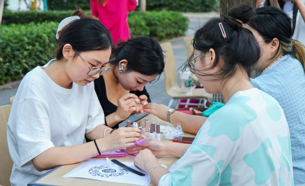 图为学生体验美甲 摄影:杨培