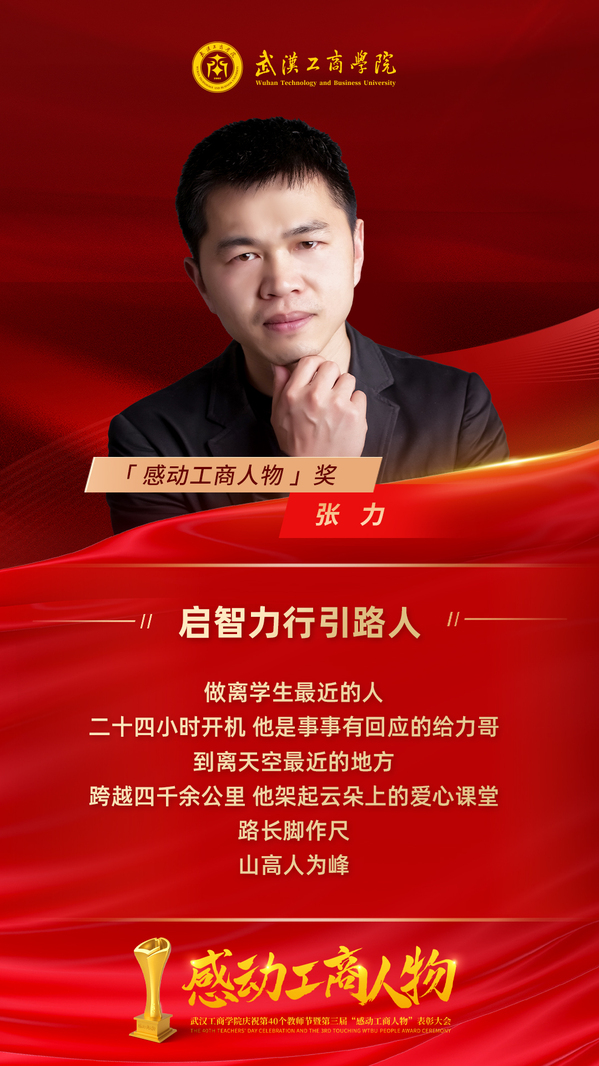 做离学生最近的人,成为学生成长的人生导师和知心朋友,是他多年来的工作理念。“上班在岗、下班在职”是他的工作常态,手机24小时开机,只要学生找,他必有回应。把学生的大事小情记在心上,让办公室成为与学生交心谈心的“温情港湾”……他用这种平凡的坚守,陪伴着一届届学生成长成才,曾获评“全国民办高校优秀辅导员”,先后三次获评学校“优秀辅导员”、四次获评学校“优秀分团委书记”等荣誉。今年,他被学校评为第三届“感动工商人物”。