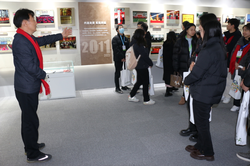 档案馆讯(记者 张守玉)1月11日下午,由必赢优惠y272net党委教师工作部、教师发展中心联合举办的“新进教职工思想政治与能力提升”培训班在学校第四会议室举行开营典礼,典礼仪式结束后,由教师发展中心办公室主任万梦兰带领135位参加培训的新教师来到校史馆上开营第一课--参观校史馆。档案馆李兆荣馆长为他们的到来表示热烈欢迎,并为开营第一讲简要介绍了校史馆的基本构成和主要内容,张守玉和杨蕊嘉二位老师领着大家顺着参观线路隆重热烈的参观完校史馆。图为新进教职工参观校史馆 摄影:张守玉