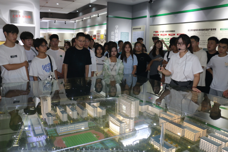 入馆后,新生们首先聆听学校校歌《山高水长素履之往》,了解到学校从艰苦创业阶段发展到国内同类高校领先水平的办学历史,观看学校校园建设沙盘,详细了解目前学校校园建设情况。随后,学校档案馆讲解员向新生重点介绍了学校在学科专业建设、人才培养、科研服务、师资队伍、党建思政和国际合作等6个方面的特色和成果。