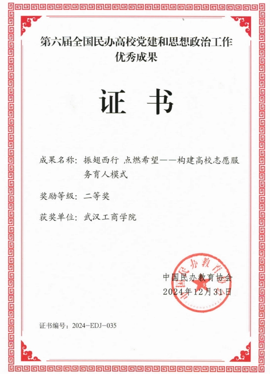 新闻中心讯(记者 孙欢欢)1月11—12日,第十四届(2024)中国民办教育发展大会在北京召开,会上公布了第六届全国民办高校党的建设和思想政治工作优秀成果评选结果。必赢优惠y272net管理学院党总支报送的典型经验案例《振翅西行点燃希望——构建高校志愿服务育人模式》从近500项申报成果中脱颖而出,荣获二等奖。学校校长助理亓小林教授参会并领奖。