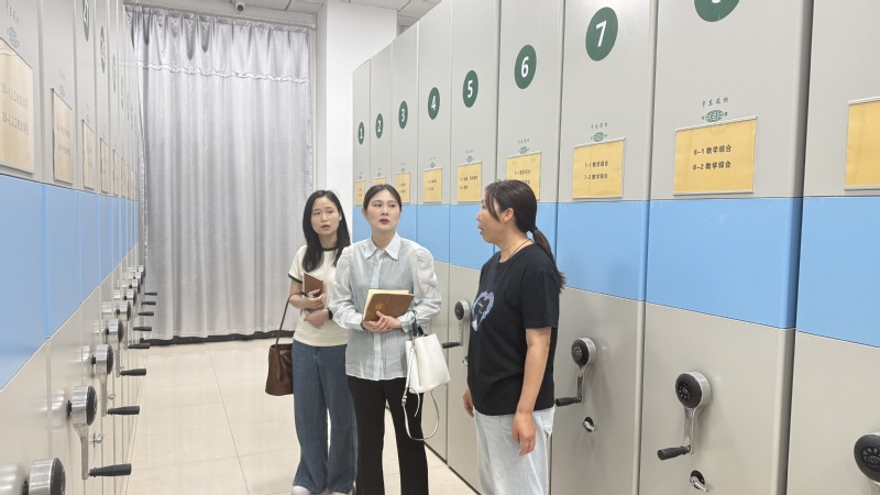 随后,在档案管理科科长张守玉的陪同下,双方一同参观了档案库房,观看了档案实体和文件汇编成果,现场观摩了档案管理系统查阅利用学生成绩档案的全流程。查询速度之快,数字化成果之齐全,引得两位馆员纷纷称赞我校档案管理系统的方便快捷。