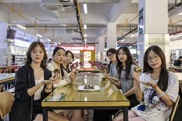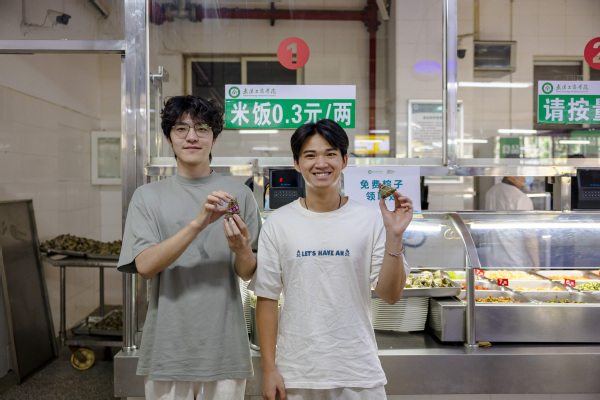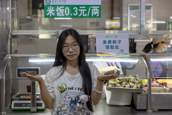 据学校后勤管理部副部长徐继安介绍,这已是学校连续第四年在端午节为在校师生送粽子了。“今年我们推出了板栗肉粽、蜜枣粽两种口味,满足了不同学生需求。与往年相比,今年还新增了包粽子体验环节,希望通过组织学生们参与传统美食制作,体验端午习俗,弘扬传统文化,也让远离家乡的学生们能够感受到‘武工商大家庭’的温暖。”