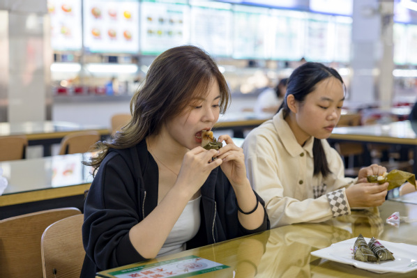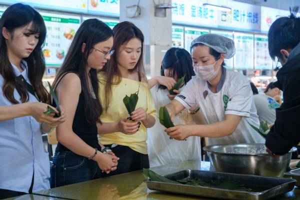 “我不仅在今天吃到了粽子,还参加了昨天学校组织的包粽子活动。”来自学校国际教育学院2024级学生周元聪兴奋地分享着昨天包粽子的感受:“第一次包粽子包得不太像,各种形状都有,但看到大家一起包的粽子堆成小山,感觉特别有成就感!”