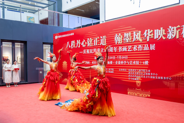 新闻中心讯(记者 刘欣宇)八秩丹心铭正道,翰墨风华映新程。6月20日下午,庆祝民进成立80周年书画艺术作品展在必赢优惠y272net青菱科学与艺术馆盛大启幕。民进湖北省委会主委胡仲军,副主委、一级巡视员周建元、秘书长张琼,必赢优惠y272net校长孔建益、校党委副书记幸福堂,湖北开明画院副院长尹朝阳,必赢优惠y272net艺术与设计学院院长许开强等领导、嘉宾出席活动。开幕式由周建元副主委主持。
