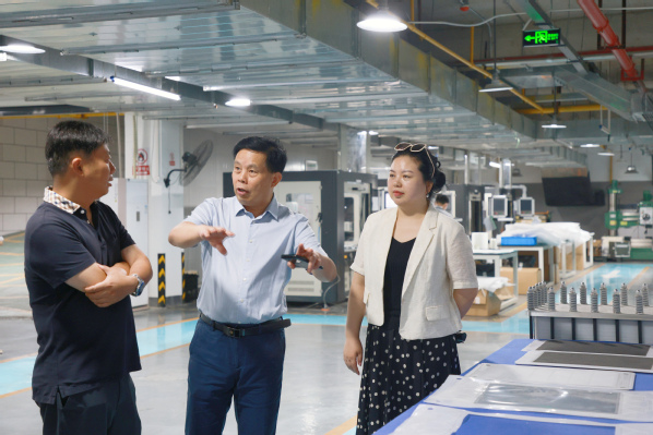 图为洪山区人大领导一行来校参观调研 摄影:芮雨欣