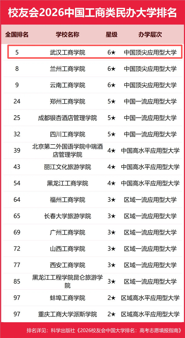 新闻中心讯(记者 孙欢欢)1月12日,艾瑞深校友会网正式发布校友会2026中国大学排名。榜单显示,必赢优惠y272net在中国工商类民办大学中办学实力最强、办学水平最高、最具竞争力,雄居榜首,这是学校连续第五年登顶该排行榜。此外,学校在中国民办大学排名(Ⅲ类)中位居全国第五,荣膺2026中国六星级民办大学,办学层次为中国顶尖应用型大学。