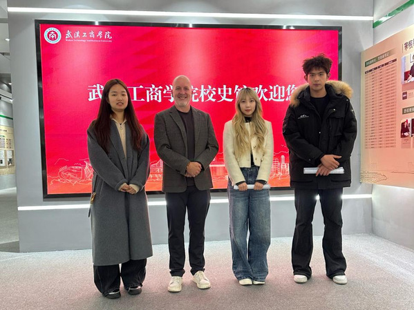 Grant Leach先后参观了校史馆及校园整体环境,学生吴亚博以流利的英文全程讲解,系统介绍了学校发展历程、办学理念、特色学科及国际交流成果,充分展现了武工商学子良好的综合素质与国际化表达能力,受到来访嘉宾的高度评价。