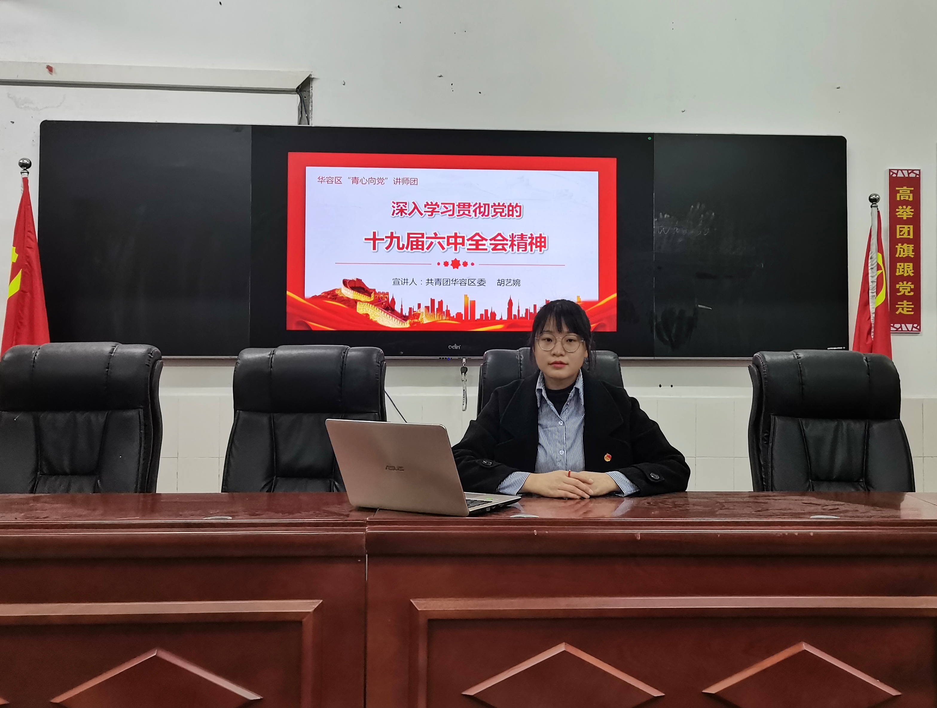 胡艺婉目前服务于共青团鄂州市华容区委。虽然大学有群团工作经历,自身的专业技能和理论知识有一定的基础,但是在实际工作方面还欠缺很多经验,她积极主动参与各项工作。先是看着学,学着练。此外严格要求自己当一名“学习型”干事。除了向同事请教工作方式方法外,还将自己的党组织关系转入联合支部,坚持每月参加支部主题党日,不断提高自身的理论水平和道德修养。提及今后的计划,她说:“在今后工作中,要实事求是,戒骄戒躁,努力克服自己的缺点,脚踏实地、积极进取、不断创新、默默的奉献,力争在各项工作中取得新的成绩,努力使自己成为优秀先锋。做到仰望星空,脚踏实地。”