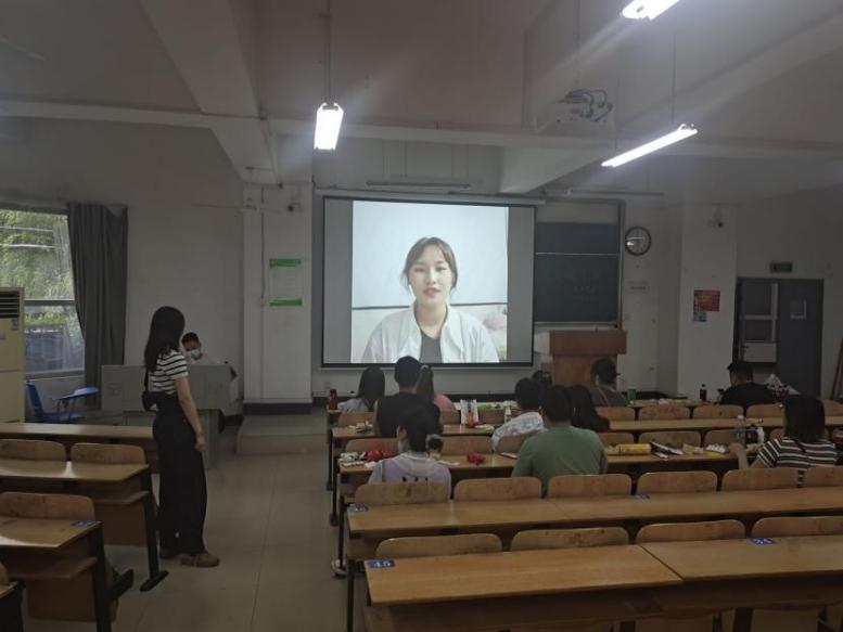 接着许紫阳分享了自己的工作心得,首先她先谈到自己在大学时对工作的看法,当时她非常向往工作,能挣钱,有足够的时间做自己想做的事情。但是当她步入社会开始工作后,她就感受到压力很大,受疫情影响大环境非常不好,很难找到工作,而且时间也很紧张,并不能够有足够的时间做自己想做的事情。除了谈到工作压力,她还谈到生活压力,每个月生活费、房租费,特别是一线城市压力更大。最后她希望学弟学妹们能够好好珍惜自己的大学时光,如果有考研考公的想法,就加油去实现它,让自己达到一个更高的水平。