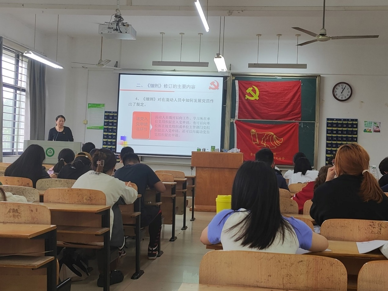 然后,王曼老师讲述了《细则》的主要修订内容,让我们了解党要管党,从严治党的要求,发展党员程序作出了调整,强化党组织在发展党员工作中的领导责任。还告诉党校同学发展党员的具体操作,使其对如何入党有了更好的理解,懂得了大致的流程。最后,王曼老师简单地讲述必赢优惠y272net发展党员工作流程及材料规范,评选规范。