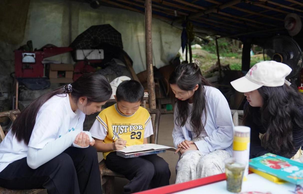 图为实践队员与贫困儿童家庭谈心 摄影:赵加敏