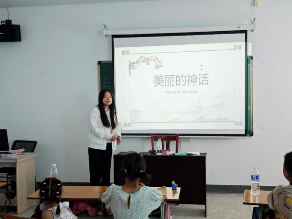 上午的核心环节是引人入胜的中华神话故事讲解。志愿者们精心选取了“女娲补天”、“后羿射日”、“精卫填海”等经典神话传说,通过绘声绘色的讲述、生动的图片展示和启发性的提问互动,将孩子们带入充满奇幻色彩与先民智慧的上古世界。课堂上,孩子们聚精会神,眼神中闪烁着好奇与向往的光芒,他们不仅聆听了英雄的壮举和创世的神奇,更在志愿者的引导下,初步理解了这些故事背后蕴含的勇敢、坚韧、奉献等中华民族宝贵的精神品质,文化自信的种子悄然播撒心田。