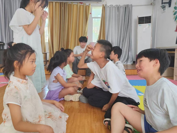 在扎实的卫生知识学习之后,活动还穿插了轻松的阅读时光和益智娱乐环节,帮助孩子们劳逸结合。后续的礼仪修养课程,志愿者通过情景模拟等方式引导孩子们学习日常礼貌规范。其中,“面对面憋笑大挑战”游戏有效活跃了气氛,增进了互动。