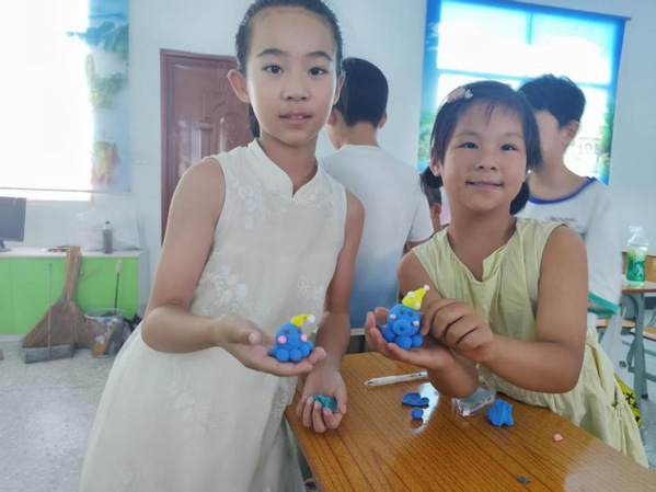 从充满奇思妙想的石头画创作,到脑洞大开的超轻黏土造型,再到欢乐互动的作品分享,“微笑蓓蕾”的志愿者们始终用耐心与鼓励陪伴着花塆村的孩子们。托管班的每一天,都在创意与欢乐的碰撞中,悉心守护着每一朵“蓓蕾”,锻炼他们的动手能力,培养他们的审美素养,助力他们在趣味实践中绽放出更加独特、耀眼的光芒。